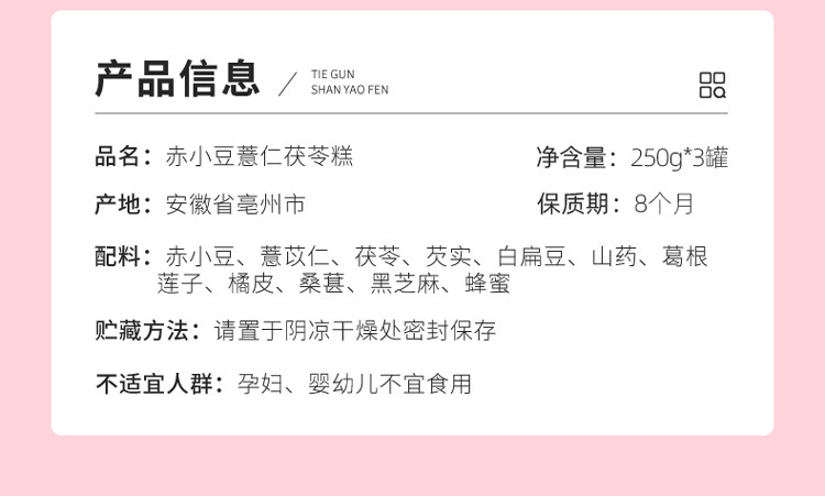 【3罐装】赤小豆薏仁茯苓糕不添加蔗糖伏湿膏零食芡实山药陈皮代餐